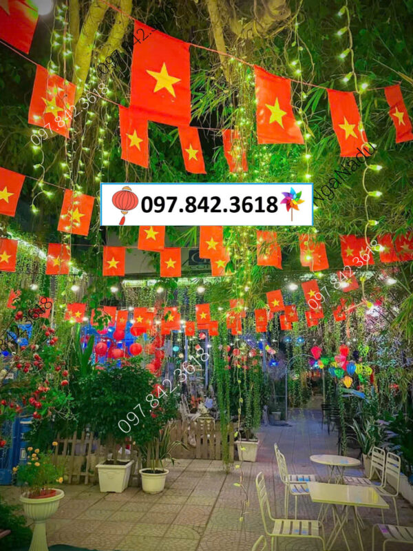 ✅ Mình có thể treo kết hợp giữa đèn lồng và cờ đuôi nheo để tăng thêm sinh động và nổi bật.
