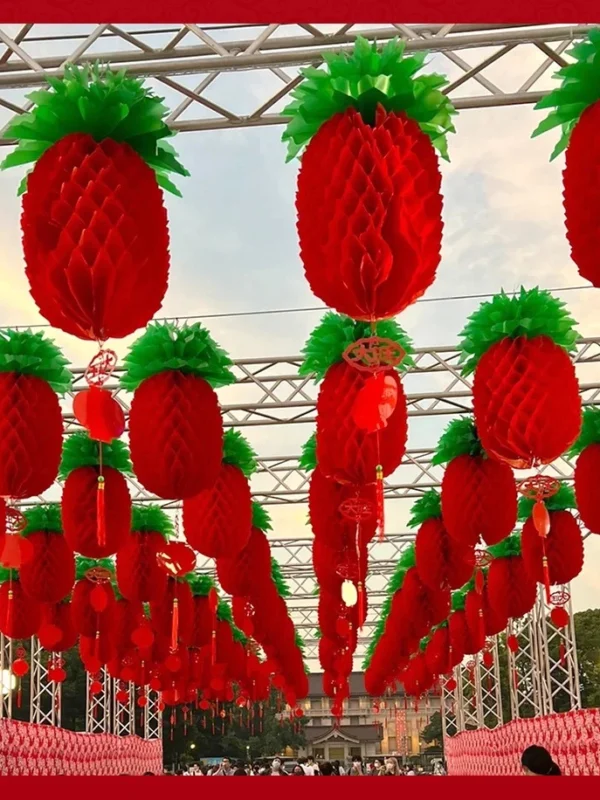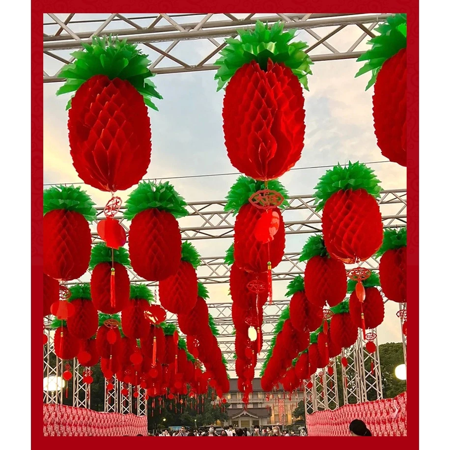 Lồng đèn hình Quả Dứa, Trái Thơm Cực Dày trang trí Tết,nhà Chùa,nhà hàng,nhà cửa,khu vui chơi – lòng đèn nilon Đỏ